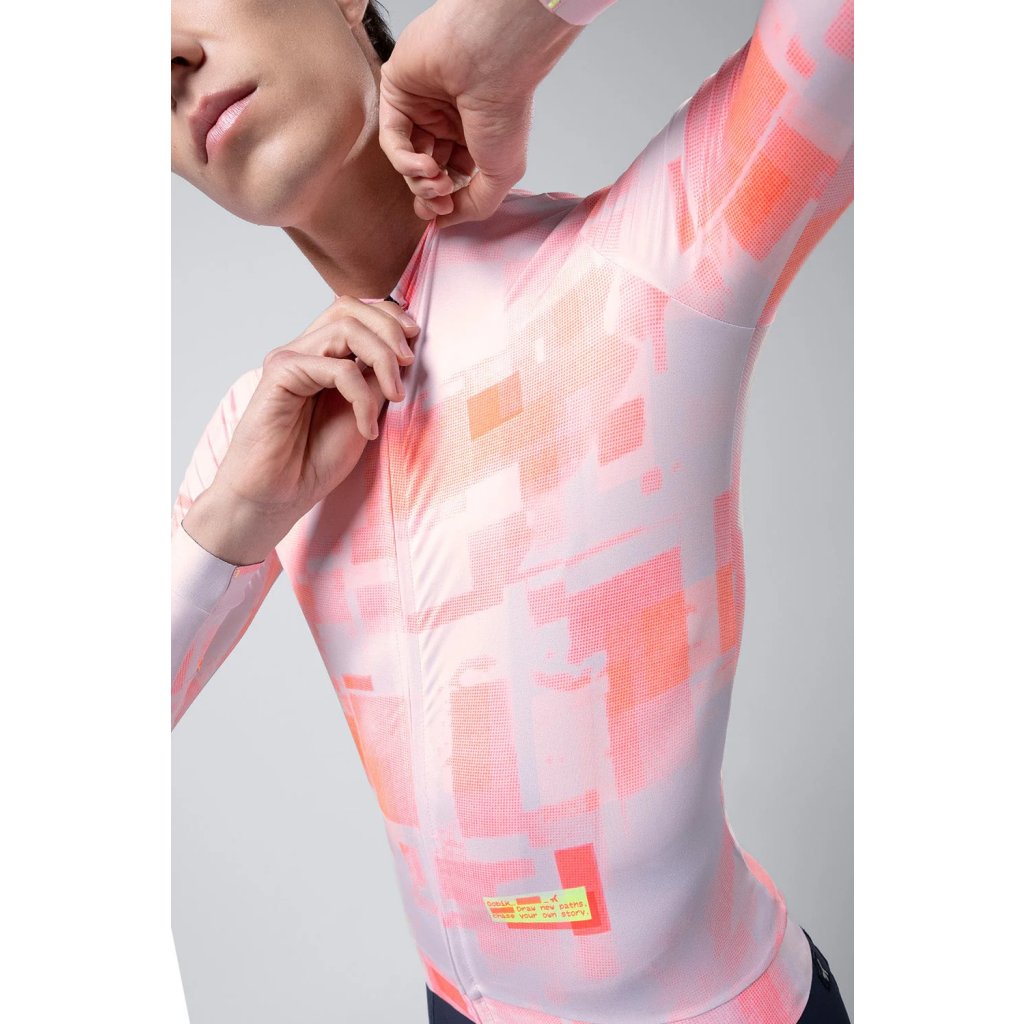 Navržen tak, aby nabízel dokonalou rovnováhu mezi lehkostí, aerodynamikou a prodyšností, což z něj činí ideální volbu pro cyklisty hledající maximální výkon v přechodných sezónách. Jeho přiléhavý střih se přizpůsobí tělu jako druhá kůže, snižuje odpor větru a zlepšuje efektivitu s každým šlapáním. Jeho struktura byla navržena tak, aby optimalizovala proudění vzduchu, směřovala ho směrem k dolní části zad a tím zlepšovala aerodynamiku v pohybu. Použité tkaniny mají pečlivě navrženou gramáž, poskytují optimální teplo bez kompromisů v oblasti odvodu vlhkosti a zajišťují pocit pohodlí i v podmínkách teplotní proměnlivosti. Kromě toho jeho konstrukce z vysoce prodyšných materiálů udržuje tělo v suchu, zabraňuje hromadění potu a podporuje regulaci tělesné teploty. Jeho všestrannost z něj činí ideální oděv jak pro intenzivní trénink, tak pro dlouhé výlety, kde se teplota může během dne měnit.